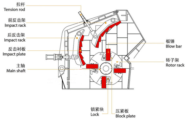 石料由機(jī)器上部直接落入高速旋轉(zhuǎn)的轉(zhuǎn)盤;在高速離心力的作用下,與另一部分以傘型方式分流在轉(zhuǎn)盤四周的飛石產(chǎn)生高速碰撞與高密度的粉碎,石料在互相打擊后,又會(huì)在轉(zhuǎn)盤和機(jī)殼之間形成渦流運(yùn)動(dòng)而造成多次的互相打擊、粉碎。